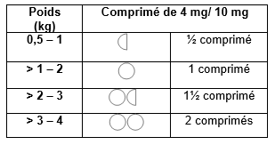 Selon le poids corporel du chat et la disponibilité des dosages du comprimé, des exemples pratiques de la dose à administrer sont les suivants :
