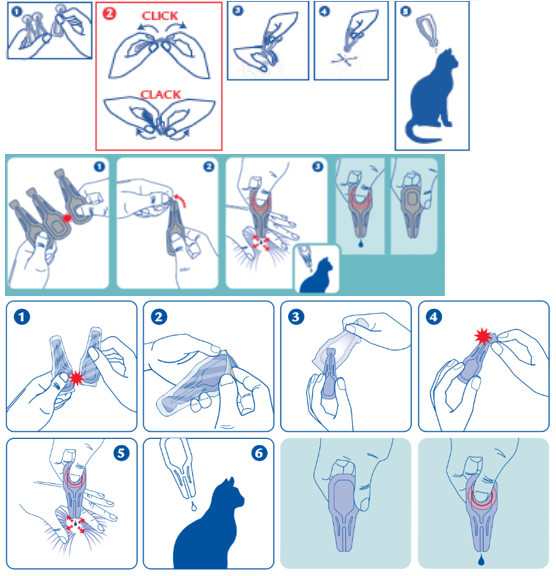 Appliquer directement sur la peau 1 pipette de 0,5 mL par animal.