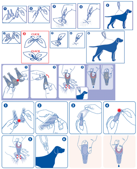 Le médicament vétérinaire n'empêche pas les tiques de s'accrocher aux animaux. Si l'animal a été traité avant qu'il ne soit exposé aux tiques, celles-ci seront tuées dans les premières 24-48 heures après qu'elles se soient accrochées. Dans la plupart des cas, elles seront mortes avant qu'elles ne se soient gorgées de sang, ce qui minimise mais n'exclut pas la transmission des maladies. Une fois que les tiques sont mortes, elles tombent de l'animal ; celles qui restent accrochées peuvent être enlevées en tirant doucement dessus.