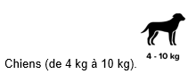 Pour les chiens de plus de 4 kg à jusqu’à 10 kg :