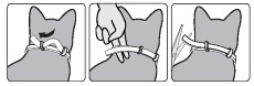 Retirer le collier du sachet protecteur immédiatement avant son utilisation. Dérouler le collier et vérifier que l’intérieur du collier est exempt de restes de languettes de fixation en plastique. Ajuster le collier autour du cou de l’animal sans le serrer de manière excessive (il est conseillé de laisser un espace de 2 doigts entre le collier et le cou). Faire passer le reste du collier dans la boucle et couper toute longueur superflue au-delà de 2 cm.