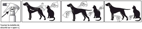 Pulvériser le produit sur les animaux à l'air libre ou dans une pièce bien aérée.